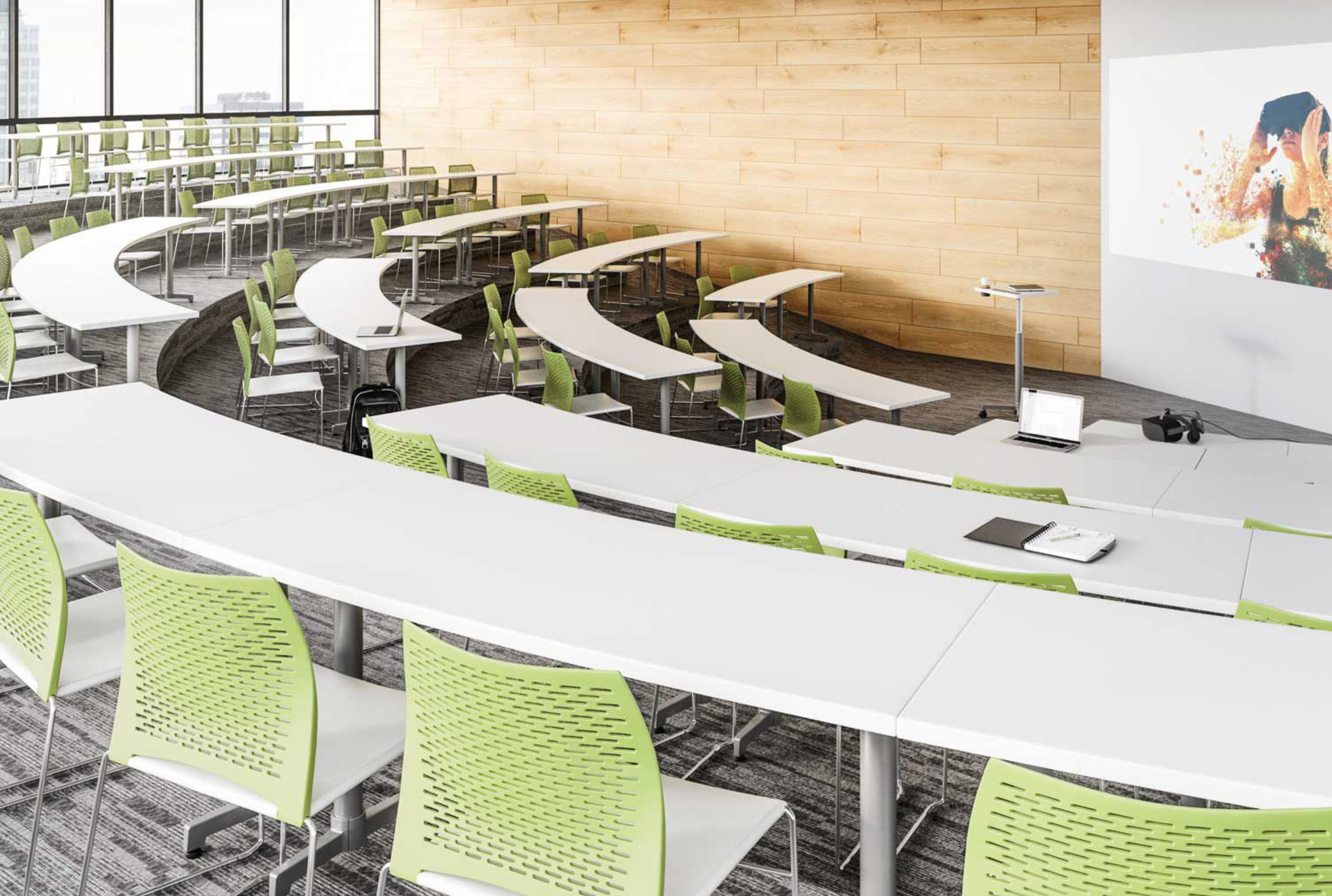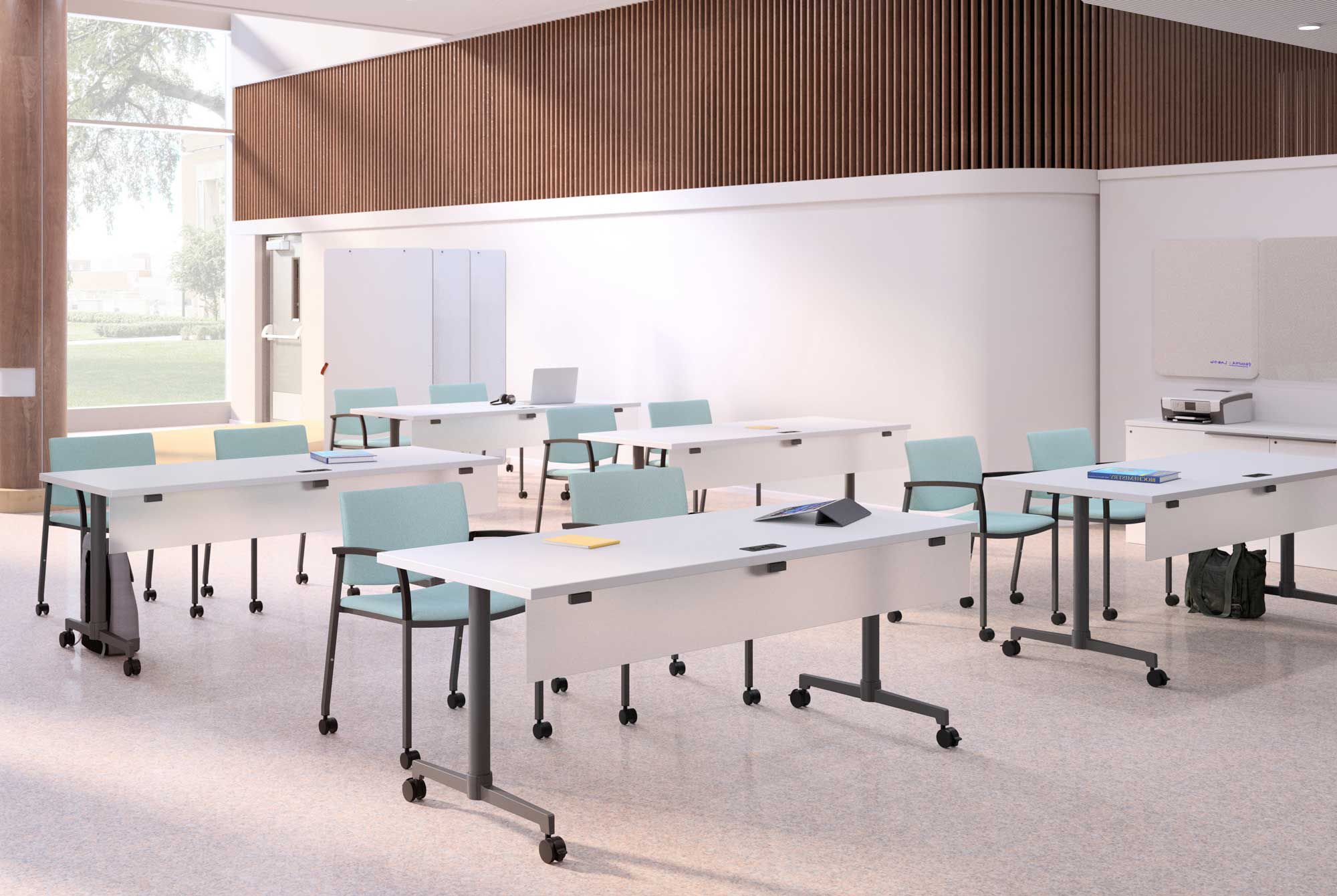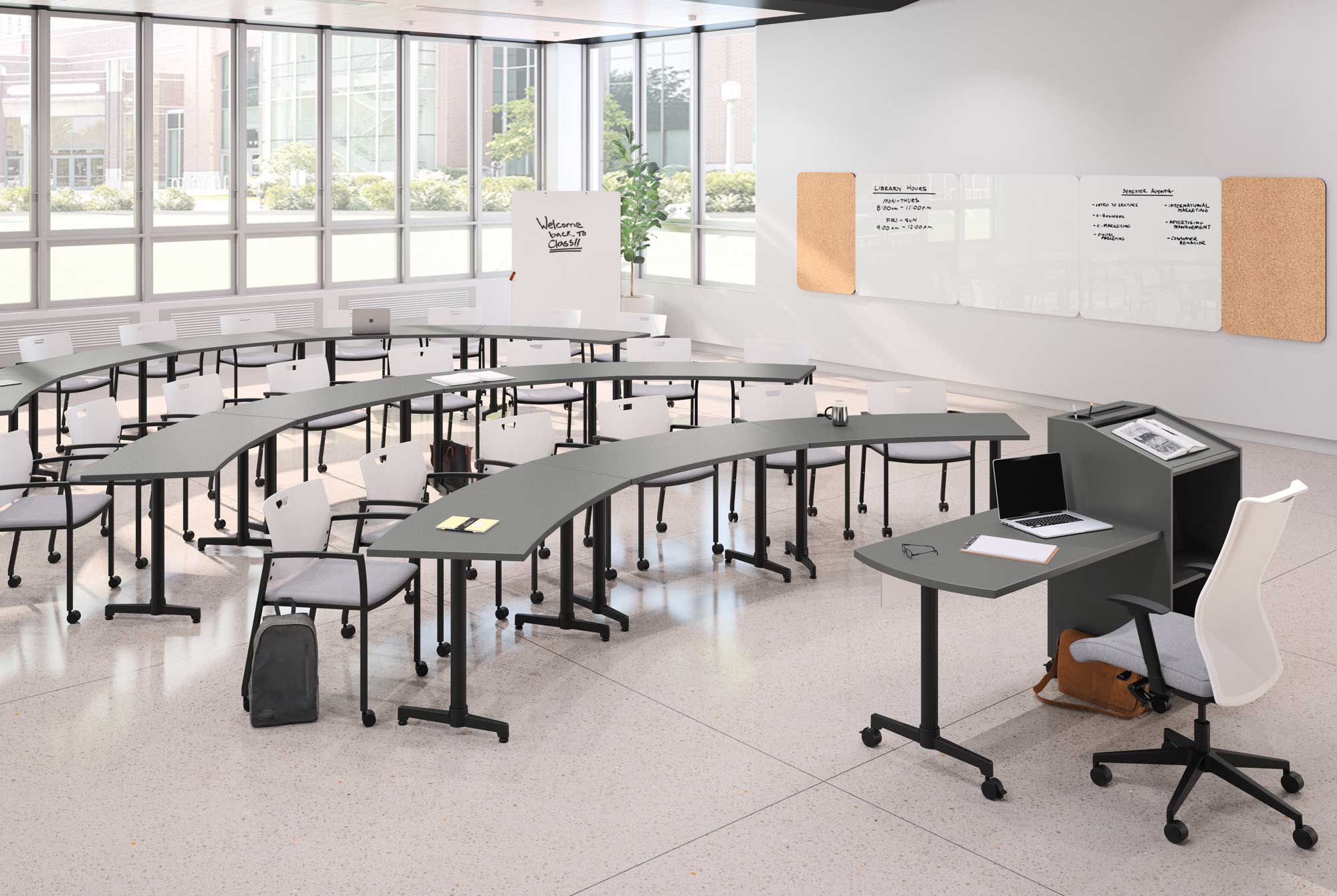 Furniture is the design element that students interact with the most! It can bring together and divide the classroom into several sections, sparks discussions, customizes the rooms, provides flexibility, and eases their minds so they can focus better.